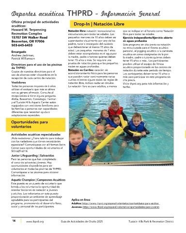 Deportes acuáticos THPRD - Información General