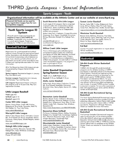 Organizational information will be available at the Athletic Center and on our website at www.thprd.org