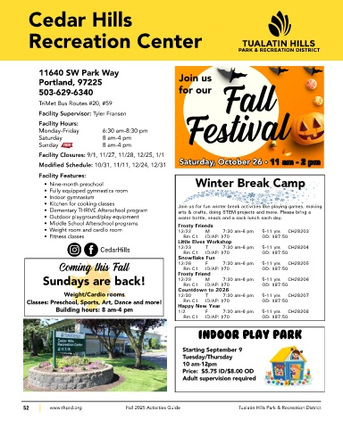 52 www.thprd.org Fall 2025 Activities Guide Tualatin Hills Park & Recreation District