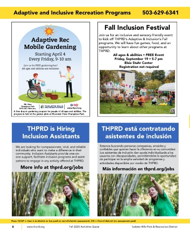 8 www.thprd.org Fall 2025 Activities Guide Tualatin Hills Park & Recreation District