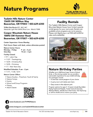 Tualatin Hills Park & Recreation District Fall 2025 Activities Guide www.thprd.org 109