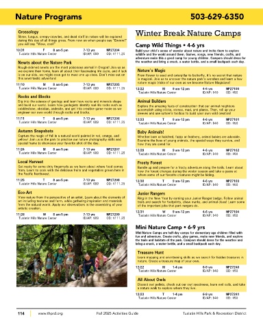 Tualatin Hills Nature Center ID/AP: $89 OD: $111.25 12/22 M 9 am-12 pm 4-6 yrs NP27100