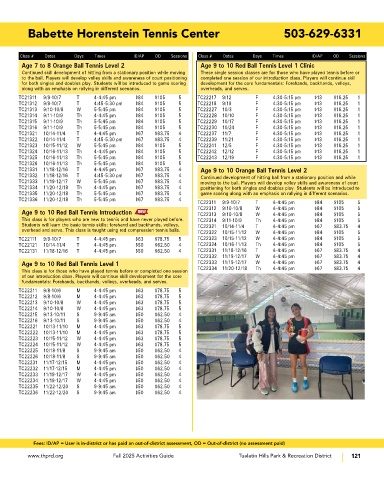 TC21331 11/18-12/16 T 4-4:45 pm $67 $83.75 4 Age 9 to 10 Orange Ball Tennis Level 2