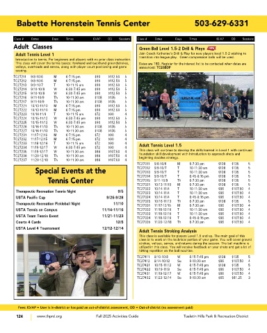 TC27233 11/18-12/16 T 10-11:15 am $72 $90 4 Adult Tennis Level 1.5