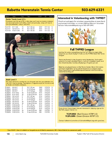 players at your level of play? Check out the THPRD Adult Fall Tennis
