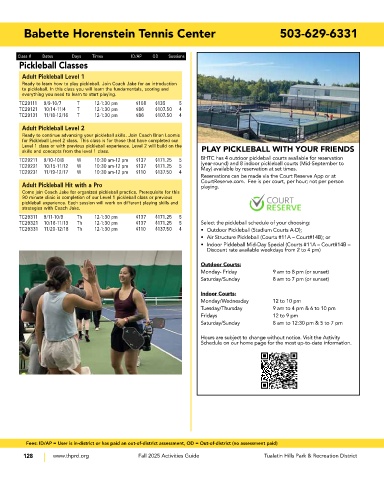 TC29331 11/20-12/18 Th 12-1:30 pm $110 $137.50 4 • Outdoor Pickleball (Stadium Courts A-D);