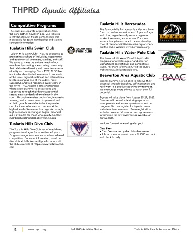 12 www.thprd.org Fall 2025 Activities Guide Tualatin Hills Park & Recreation District