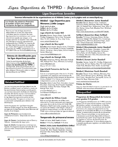 Tenemos información de las organizaciones en el Athletic Center y en la página web en www.thprd.org