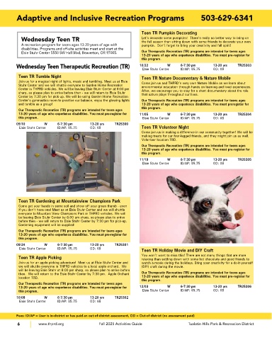 6 www.thprd.org Fall 2025 Activities Guide Tualatin Hills Park & Recreation District