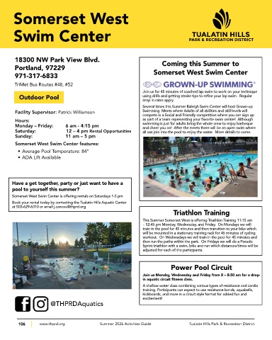 106 www.thprd.org Summer 2026 Activities Guide Tualatin Hills Park & Recreation District