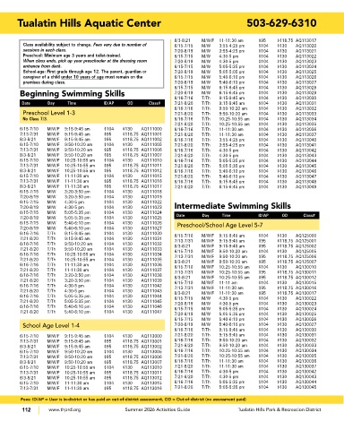 Preschool Level 1-3 7/21-8/20 T/Th 9:50-10:20 am $104 $130 AQ113033