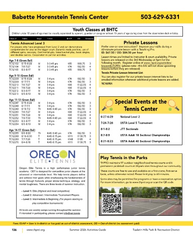 TC12254 8/5-8/19 W 3-4 pm $74 $92.50 3 7/24-7/26 USTA Level 5 Tournament