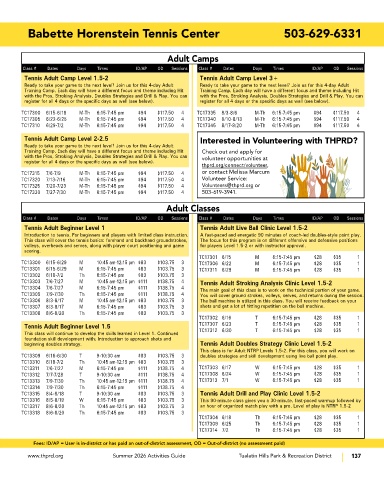 Tennis Adult Camp Level 2-2.5 Interested in Volunteering with THPRD?