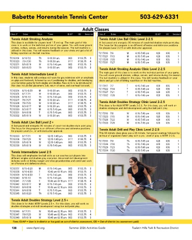 TC13328 7/8-7/29 W 9-10:30 am $111 $138.75 4 Tennis Adult Doubles Strategy Clinic Level 2-2.5
