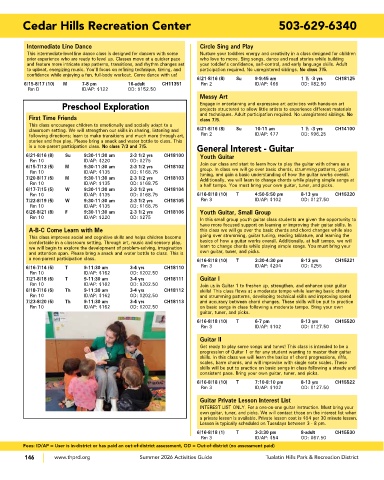 7/23-8/20 (5) Th 9-11:30 am 3-4 yrs CH18113 and accuracy between chord changes. These skills will be put to practice