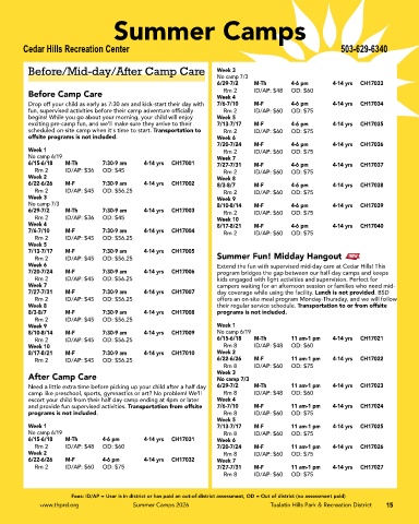 www.thprd.org Summer Camps 2026 Tualatin Hills Park & Recreation District 15