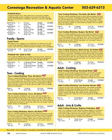 build confidence in the kitchen. Participants learn hands-on skills while 8/21 (1) F 6:15-8:45 pm 16-adult CO15521