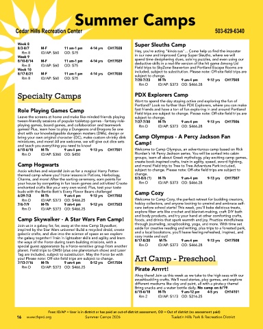 16 www.thprd.org Summer Camps 2026 Tualatin Hills Park & Recreation District