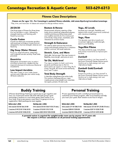 Classes are for ages 14+. For Conestoga's updated fitness schedule, visit www.thprd.org/recreation/conestoga