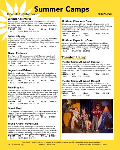 18 www.thprd.org Summer Camps 2026 Tualatin Hills Park & Recreation District
