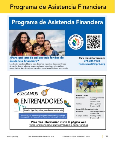 www.thprd.org Guía de Actividades de Verano 2026 Tualatin Hills Park & Recreation District 193