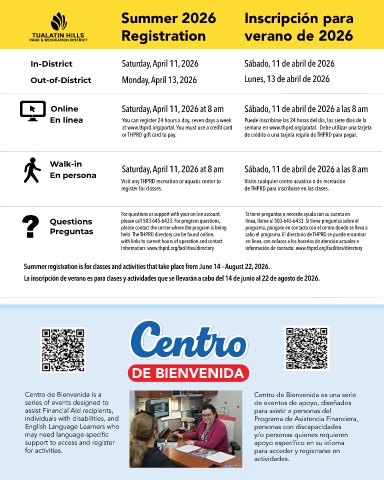 register for classes. de THPRD para inscribirse en las clases.