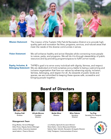 Mission Statement The mission of the Tualatin Hills Park & Recreation District is to provide high-