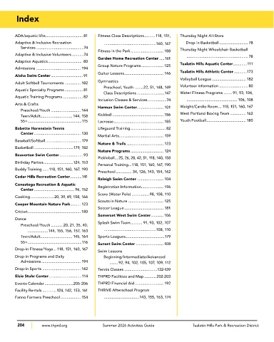 Events Calendar ...........................205-206 THPRD Financial Aid ........................... 192