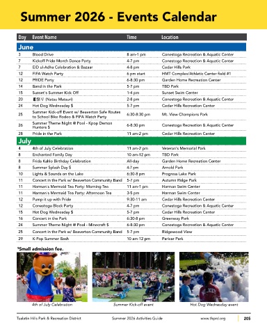 Tualatin Hills Park & Recreation District Summer 2026 Activities Guide www.thprd.org 205