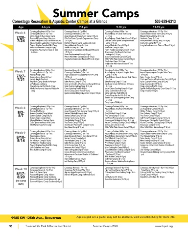 Conestoga Recreation & Aquatic Center Camps at a Glance 503-629-6313