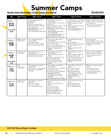 Garden Home Recreation Center Camps at a Glance 503-629-6341