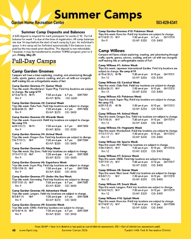 48 www.thprd.org Summer Camps 2026 Tualatin Hills Park & Recreation District