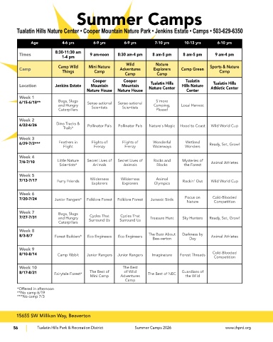 56 Tualatin Hills Park & Recreation District Summer Camps 2026 www.thprd.org