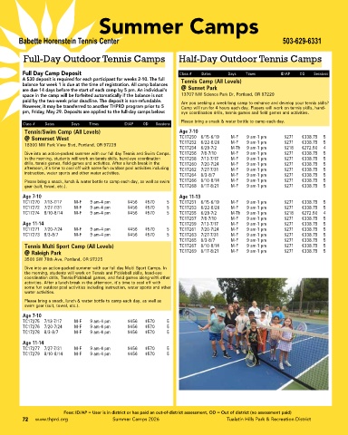 72 www.thprd.org Summer Camps 2026 Tualatin Hills Park & Recreation District