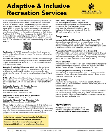 74 www.thprd.org Summer 2026 Activities Guide Tualatin Hills Park & Recreation District