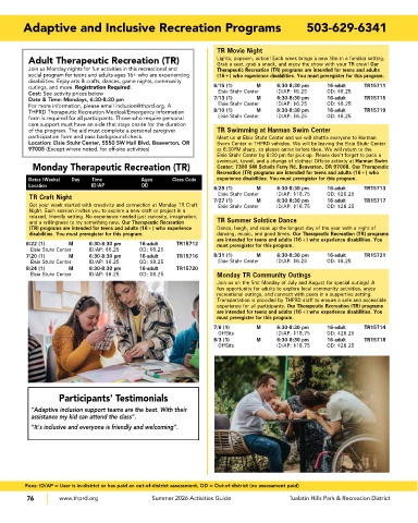 THPRD Therapeutic Recreation Medical/Emergency information 8/10 (1) M 6:30-8:30 pm 16-adult TR15719
