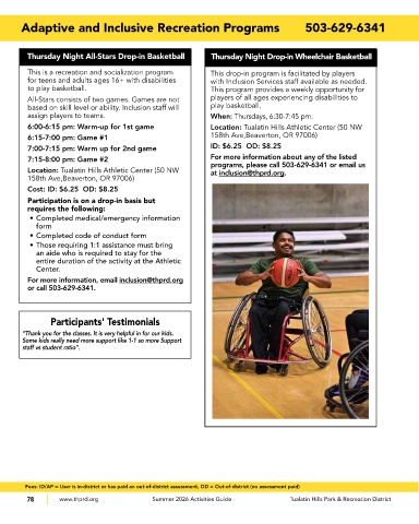 78 www.thprd.org Summer 2026 Activities Guide Tualatin Hills Park & Recreation District