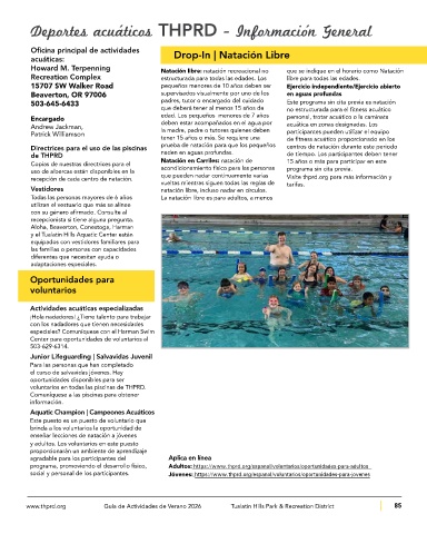 www.thprd.org Guía de Actividades de Verano 2026 Tualatin Hills Park & Recreation District 85