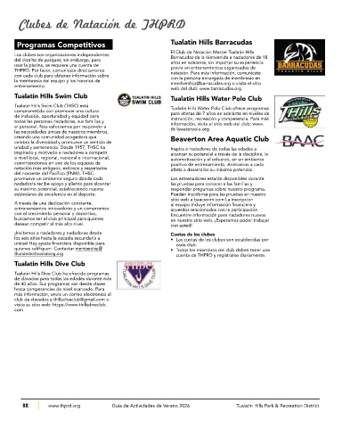 88 www.thprd.org Guía de Actividades de Verano 2026 Tualatin Hills Park & Recreation District