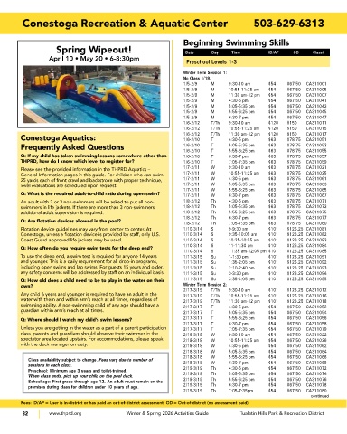 32 www.thprd.org Winter & Spring 2026 Activities Guide Tualatin Hills Park & Recreation District