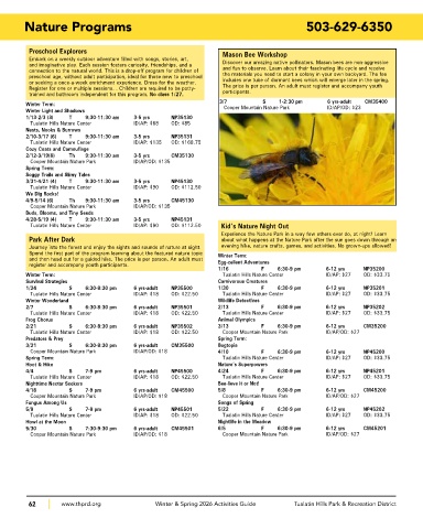 Cooper Mountain Nature Park ID/AP/OD: $18 4/10 F 6:30-9 pm 6-12 yrs NP45200