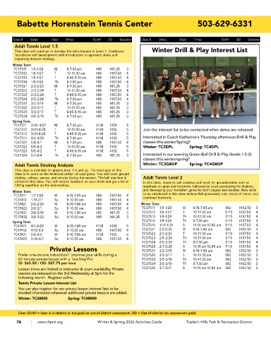 Lesson times are limited to instructor & court availability. Private TC37535 3/7-3/21 S 11:15 am-12:45 pm $82 $102.50 3